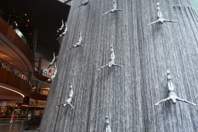 Depois foi ver o aquário gigante que existe no shopping. Passear um pouco, meter o nariz em algumas lojas. Sair para a rua, passear por ali por perto, o coração da terra da ostentação.