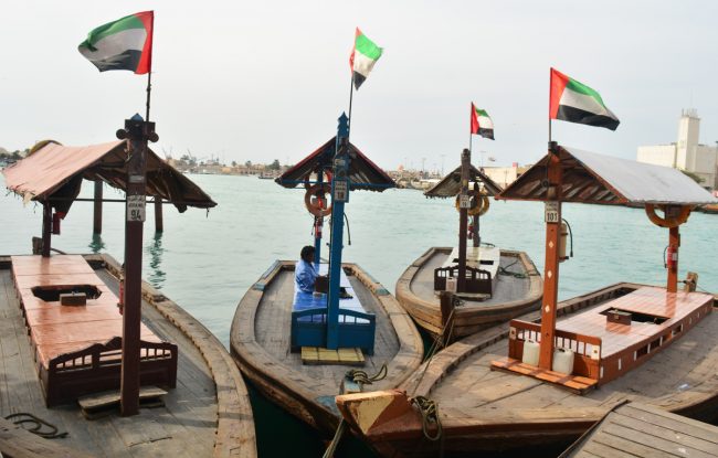 O dia já ia avançado mas estava pronto para mais aventuras. Vamos lá então atravessar o canal. Os barquitos são cada vez mais, agora que a hora de ponta se aproxima e os trabalhadores regressam aos seus alojamentos. São mão-de-obra barata, gente do Paquistão, do Sri Lanka, da Índia. Os barquitos chegam, enchem rapidamente com pessoas que se sentam de um lado e de outro do banco corrido e logo se dirigem para a margem oposta, para uma das diversas estações existentes. O trajecto custa apenas 1 Dirham, cerca de 0,25 Eur.