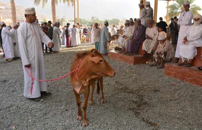 Há cabras e vacas, um par de turistas, mulheres vestidas de forma tradicional, homens de robe branco, carrinhas e camionetas carregados de animais. No recinto encontra-se a bicharada, presa a estacas, aguardando a hora da exibição, quando são levados pelo dono num circuito circular onde são observados por potenciais compradores que fazem licitações sobre os animais que lhes interessam.