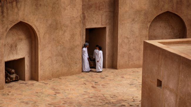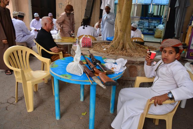 Era agora altura de dar uma volta pelo souk. Existem vários, com personalidades diferentes, mas talvez por ser Sexta-feira o ambiente estava um pouco morto, com muitas lojas fechadas. Fica na memória um espaço improvisado, sobre as mesas de um café, onde se vendiam armas. Estas são parte importante na vida dos omanis, pelo menos fora de Muscat. Os velhos costumes estão bem presentes nas novas vidas, os antigos conflitos tribais podem regressar a qualquer momento, ninguém dispensa as suas armas.