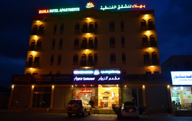O Bahla Hotel Apartments é um hotel bem mais caro do que estou habituado a pagar – a rondar os 65 Eur – mas é um conforto que é bem vindo. O quarto é impecável, mas a Wi-Fi não chega lá o que é frustrante… se é para pagar conforto, esperava a perfeição (à minha escala, claro). Mas tudo bem… entre o corredor do piso e uma mesa do restaurante tenho o meu momento online.