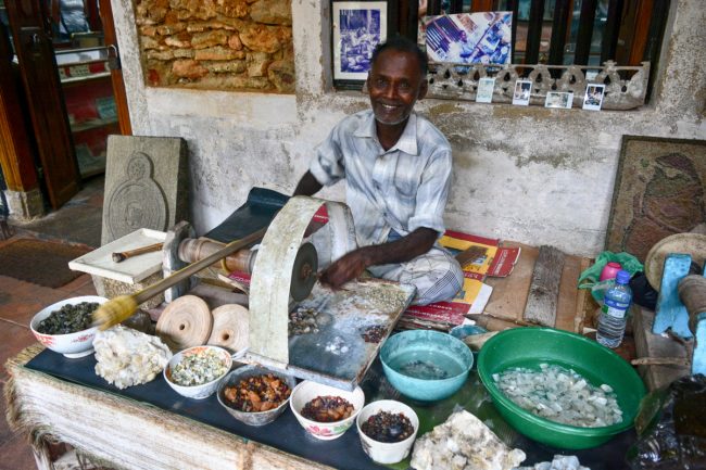 Percorremos algumas das ruas. Certamente não todas, talvez as principais e as que parecem mais prometedoras. Encontramos uma pequena praia na parte mais afastada, onde há locais e estrangeiros, e um vendedor de fruta. Japoneses sentam-se num tronco de árvore derrubada com uma avó cingalesa.