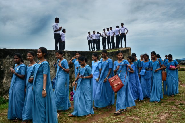 Há lojas de comes e bebes onde as pessoas vão tratando do pequeno-almoço e uma multidão passa por mim. Mulheres de saris coloridos, jovens de uniformes escolares, polícias com fardas de inspiração britânica, e os carregadores, sempre eles sujos e magros, carregados, trementes, em esforço.