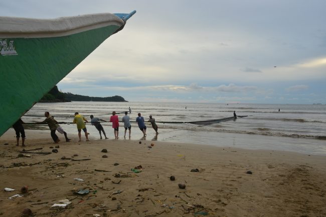 Mas o dia não ia ainda acabar. A cerca de meio caminho, vejo um mercado de peixe, vejo barcos de pesca na areia e saltamos do autocarro que parava num estrangulamento de trânsito. O que se seguiu foi mágico… uma trupe de pescadores puxava as redes de um barco que se encontrava a uns quatrocentos metros dentro de água… e chamava os turistas que iam espreitando para os ajudar na faina.