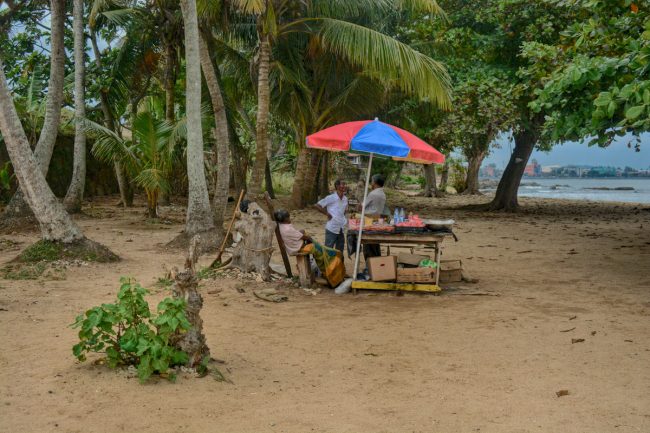 O barco que estava na origem de tudo chega à praia. Outro movimenta-se para sair. O dia está a chegar ao fim. Vamos ver o mercado ali ao lado, cheio de pescado, muito animado, ao longo da estrada. Há pessoas a comprar, a maioria locais, mas também alguns estrangeiros. Recomenda-se este local!