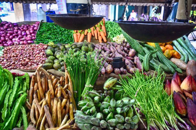 Sair e virar à direita, para logo encontrar o mercado. Rua muito comercial, muito local, interessante, cheia de cor e vida. Movimento louco de veículos e pessoas. Um recinto de venda de fruta, sombrio e misterioso. Assim sim. Estou a gostar cada vez mais do Sri Lanka, sinto-me bem aqui.