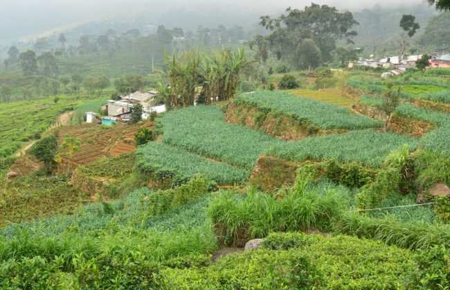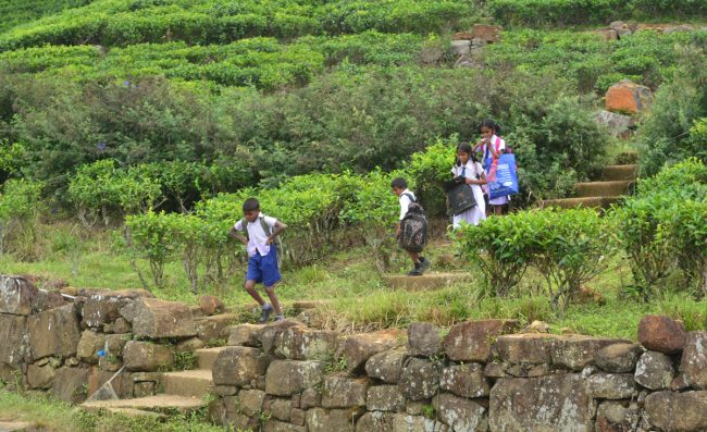 Gostei também de ver os terrenos de um liceu cheio de alunos, uma multidão de pontos brancos. E os campos de chá onde a tempos se avistam os apanhadores das folhas. E chegamos a Haputale.