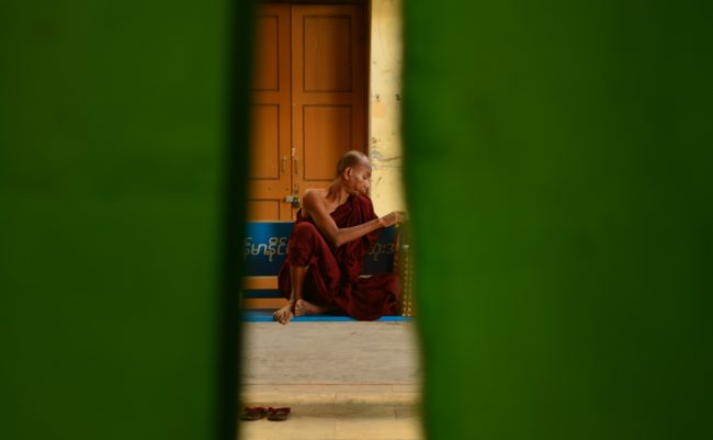 Passa também o ocasional táxi de bois. Um SUV para mesmo ali, saem dois jovens e trazem um drone. Meninos ricos, meninos de bem de Mandalay, com dinheiro para os brinquedos mais extravagantes. Passa uma scooter conduzida por um homem que leva consigo uma femme fatale de verde vestida.