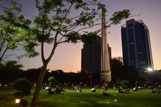É um imenso prazer andar por ali. Já o tinha sido no Dia dos Namorados, mas na altura pensei que a animação se devia à data especial. Não, num fim de tarde comum é ainda mais activo. Lá fora, ao longo do gradeamento, como antes, há uma enorme feira de comes e bebes. A escuridão chega mas logo as luzes se acendem, fazendo da noite dia, com o vigor da iliuminação de um campo de futebol. À entrada do parque um painel com as regras diz, entre outras coisas, que o horário de abertura termina às 18:00. São 18:20 e nem o exército conseguiria fechar o parque nos próximos tempos.