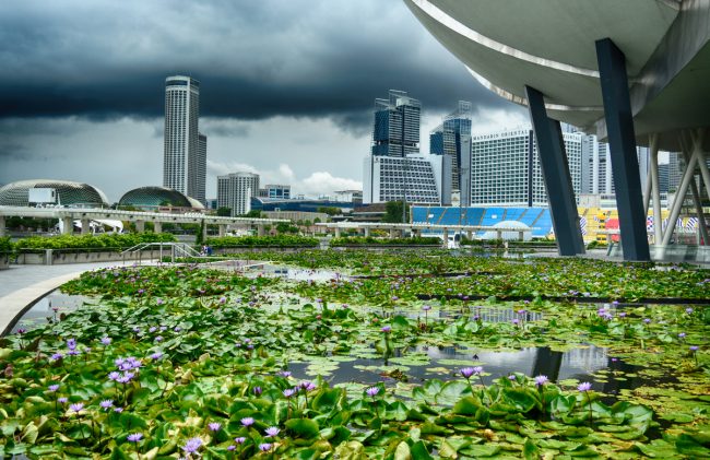 Depois atravessei-o e internei-me na moderna Singapura, de imponentes edifícios modernos, centro nevrálgico de negócios, moderna, executiva, atarefada. As pessoas aqui são essencialmente chinesas. As jovens mulheres vestem sexy, uma tentação para o olhar, por todo o lado. Dei por mim já muito mais longe do que esperava… tinha ido “só ali”, ver a actividade da cidade dos negócios e já ia acolá… dando a volta a uma superfície de água, com o céu muito carregado, a ameaçar forte trovoada. Mas não conseguia resistir. O ambiente estava fantástico.
