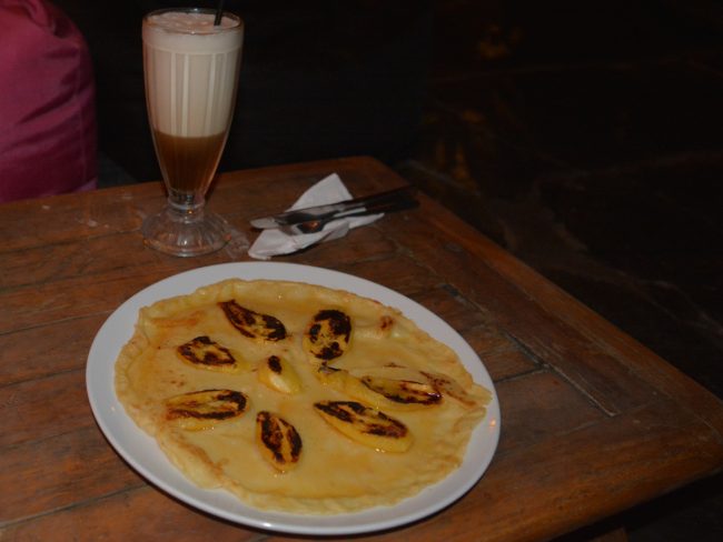 Encontro mais um templo. Não há ninguém no espaço, tenho-o só para mim. Estes templos são mesmo fotogénicos! Disparo mais umas dezenas de fotos e vou caminhando de regresso ao hostel, uma agradável base, com um espaço comum apetecível, onde passarei um belo serão, com sumo de tamarindo e o computador ao colo, a escrever e a tentar colocar o trabalho em dia. Será por lá que janto, uma deliciosa panqueca de banana.