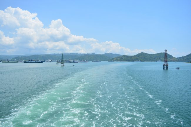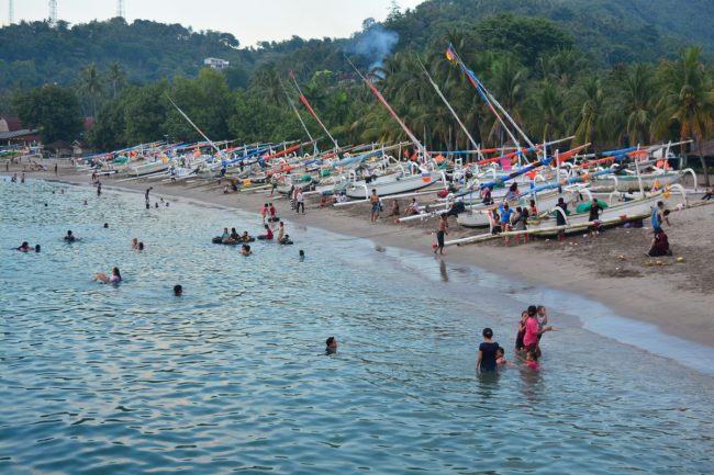 O ferry entre Padangbai, em Bali, e Lembar, na ilha vizinha de Lombok, parte mais ou menos de hora a hora, sem pausas, dia e noite. O bilhete custa 60.000 Rupiahs, cerca de 4,20 Eur. Não é muito, para uma viagem de cinco horas.