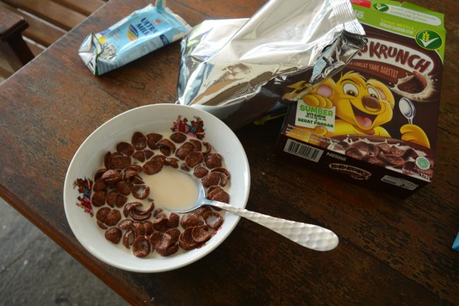Comer foi o grande problema. No primeiro dia, sem grandes forças para procurar alternativas, fiquei-me com um pedaço de fruta que as moças do Edwin arranjaram. Encontrei um pequeno supermercado mais à frente, mas só trouxe água. Agora, no segundo dia, indicaram-me um outro supermercado. Era uma coisa mínima, mas encontrei lá bens preciosos para mim: leite e cereais de chocolate! Juro, há semanas que nada me dava tanto prazer a comer!