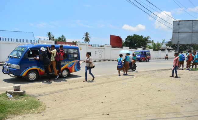 Estava na hora de ir para a cidade. Esperei pelo microbus. Em Dili a rede de transportes públicos é feita das rotas destes microbuses, umas coisinhas pequenas que andam por todo o lado, com trajectos bem definidos, rotas associadas a números, que convém conhecer.