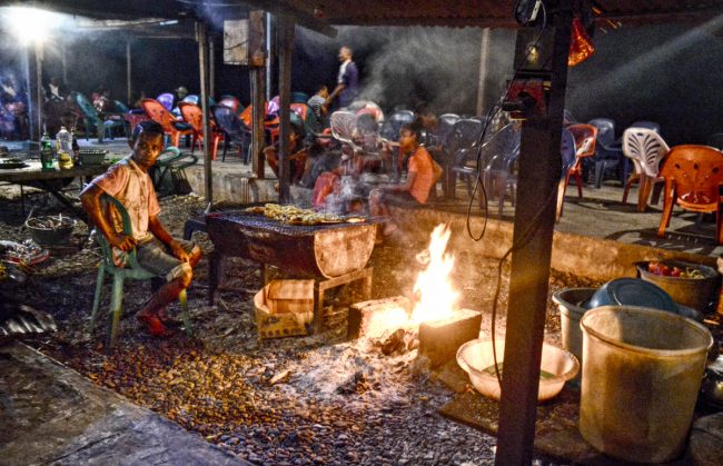 Acabei por me encontrar em casa com a Katy e começou-se a falar de jantar. Decidimo-nos por uma feira de churrascos que há na outra ponta da cidade, já à saída para Liquiçá. Não sabia bem ao que ia, mas adorei o local! Super castiço! Há um enorme telhado de zinco que cobre a área onde uma série de pequenos negócios grelha a sua carne e vende bebidas. Vamos lá, escolhemos o que queremos e vamos para umas cadeiras de plástico colocadas na área para comer, junto a uma praia de pequenos seixos. Adorei o local e a carninha soube-me muito bem!