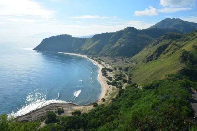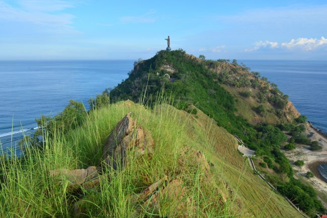 Cheguei à estrada, junto ao mar, e virei à direita. Estava ideal. Céu azul, e pela manhã a temperatura era agradável. Caminhei pelo asfalto até chegar à praia seguinte, a do Cristo-Rei, um monumento oferecido pela Indonésia após a independência final de Timor-Leste. Apesar de ser tão cedo já se vê uma ou outra pessoa a fazer desporto. Compreende-se, mais tarde o calor será abrasador.