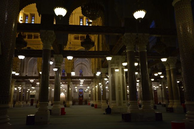 Entretanto a noite ia chegando e quando entrámos no recinto da mesquita já as luzes se acendiam. Estava um ambiente fantástico. A chuva tinha limpo a atmosfera e agora que tinha parado as nuvens criavam fantasias brancas lá em cima, enquanto que o amarelo das lâmpadas que envolviam o templo criavam um contraste de temperatura de cor muito curioso.