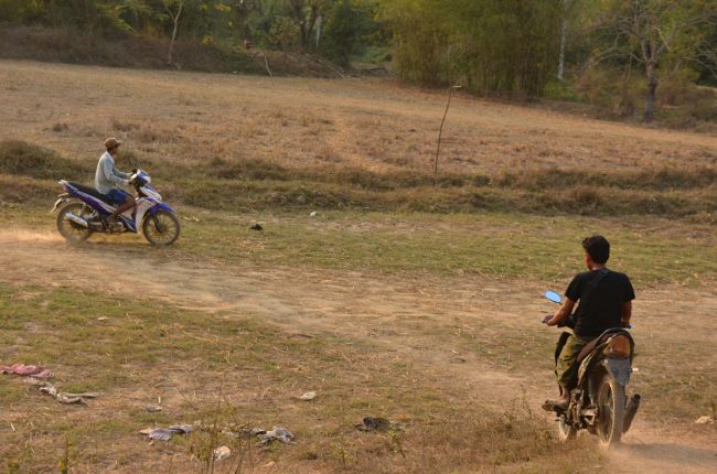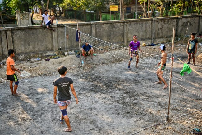 À hora certa o comboio arranca. Segue muito devagar. Começo a perceber porque são precisas 15 horas para vencer 500 km. Enquanto atravessa os intermináveis subúrbios de Rangoon circula a cerca de 25 km/h. É uma massa urbana imensa. A visão mais comum são os jogos de chinlon, um cruzamento entre voleibol e futebol: duas equipas, uma rede, passar a bola por cima da rede para o campo de adversário, só com técnicas de futebol… nada que eu não tivesse jogado nos tempos de liceu, mas em Myanmar isto é uma instituição levada bem a sério. Por todo o lado há miúdos, rapazes e homens em campos inexistentes, improvisados e de aspecto profissional.
