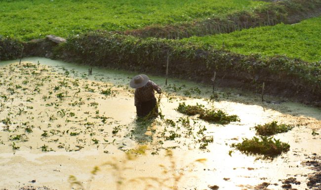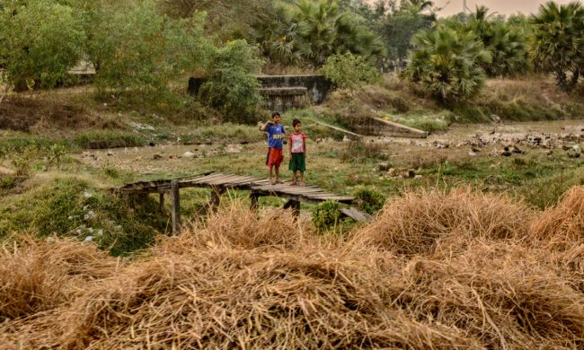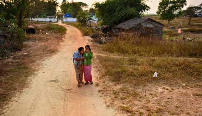 Vejo pequenas figuras que ultimam a limpeza de um campo, uma família que se senta no chão, no exterior da casa, partilhando o momento. E a paisagem, com o sol a descer, uma enorme bola laranja a perder-se na omnipresente névoa da Birmânia.
